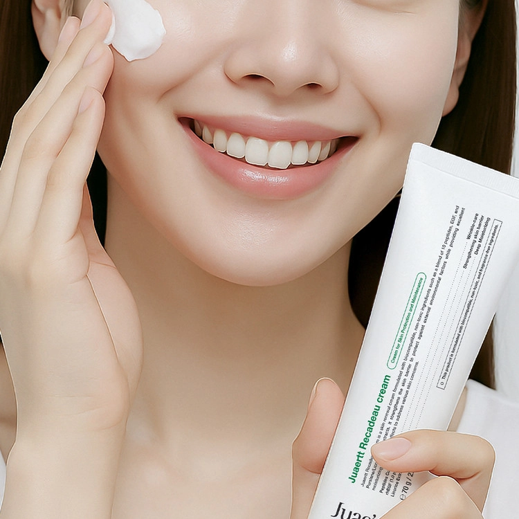 Created in line with Juaertt’s skincare philosophy, Recadeau Cream combines natural ingredients with advanced dermatological science to deliver deep nourishment to sensitive, dry skin, strengthen the skin barrier, improve signs of aging, and protect against external aggressors.